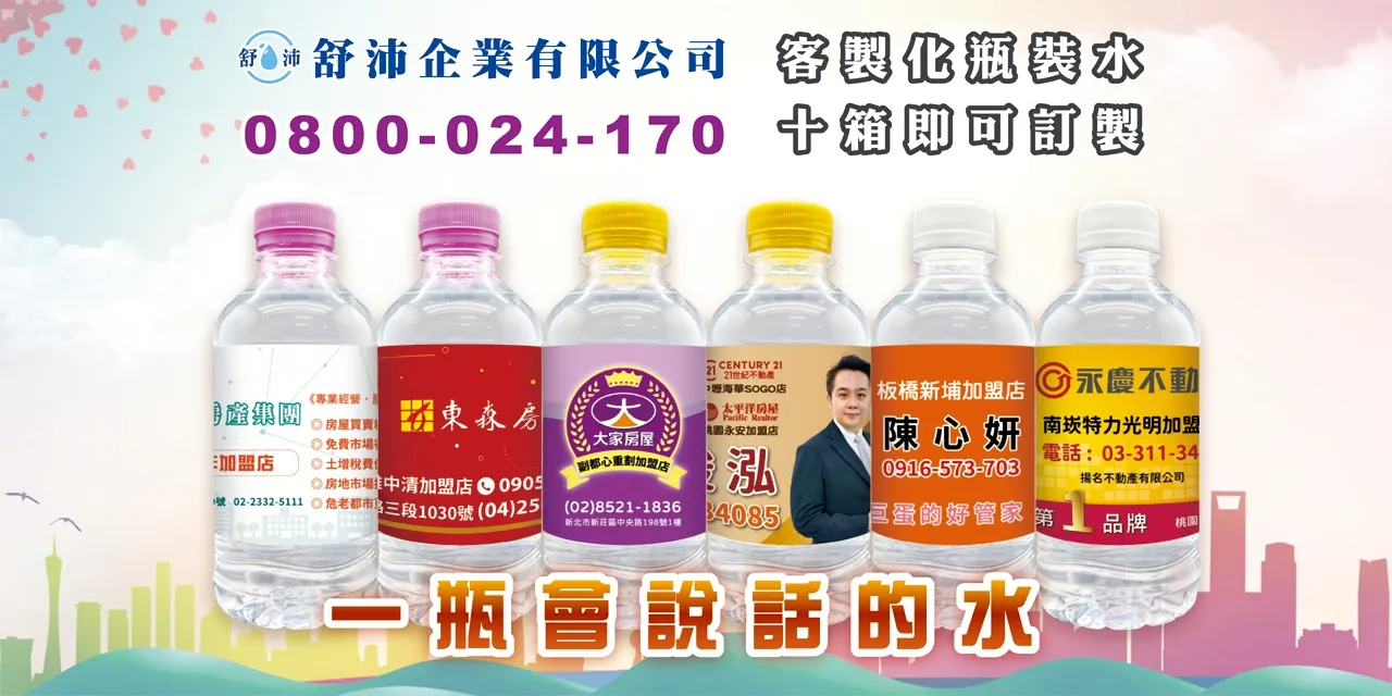 房仲業最佳形象推手——客製化瓶裝水,標籤印上您的聯絡資訊與品牌LOGO,客戶喝水同時也記住您!
