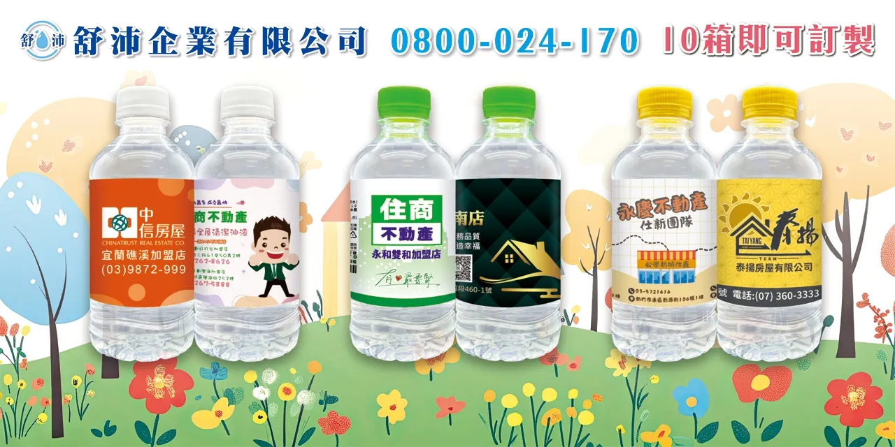 我們提供房仲業最貼心的客製化水瓶服務,免費設計標籤,急件2-4小時即可完成,讓您隨時展現專業與誠意!